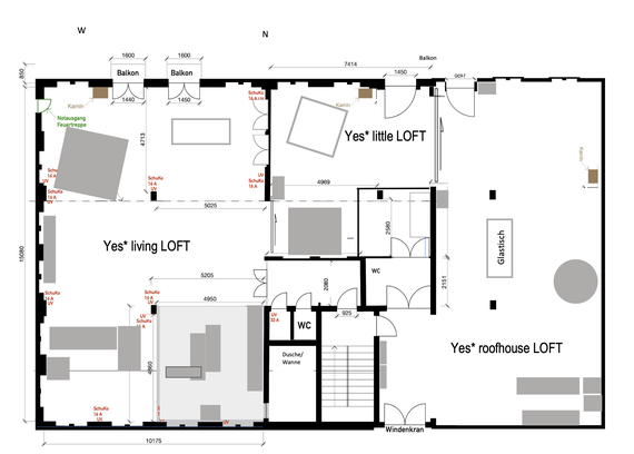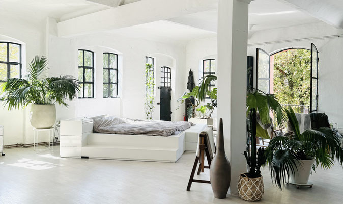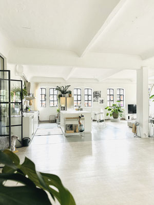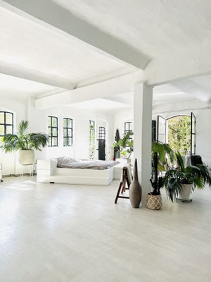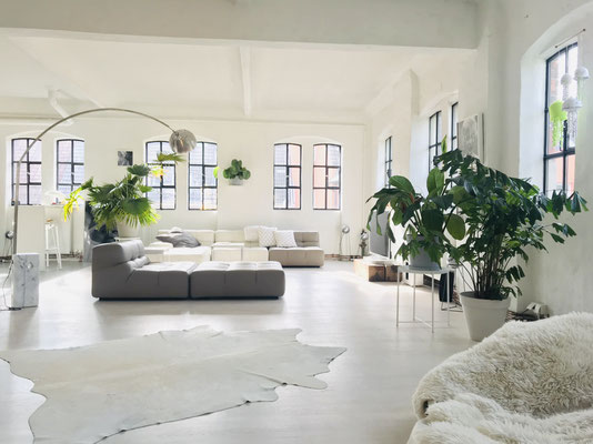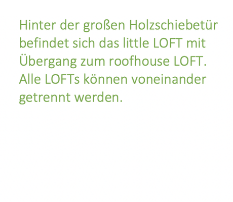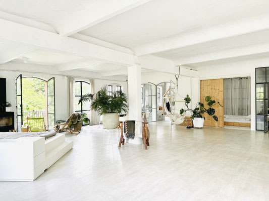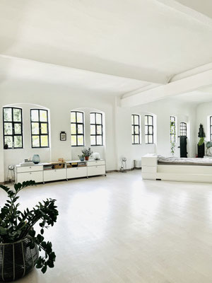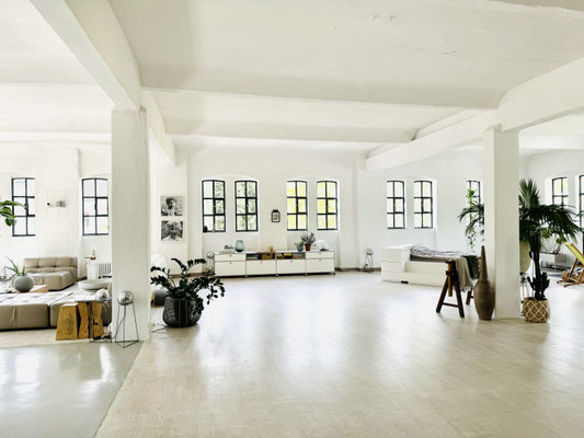 Unser schönes offenes helles Yes* living LOFT hat insgesamt eine Fläche von ca. 280 qm. Es besteht aus einen Hauptraum und einen Nebenraum (hinter der Holzschiebetür), dem Yes* little LOFT.